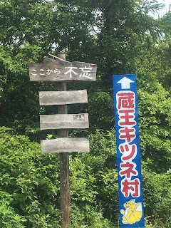 なんとか頂上まで来て、ここから少し下ってキツネ村
